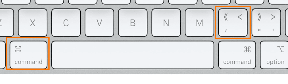 Tip2.按下键盘上的 Command + , (图中的2个按键)